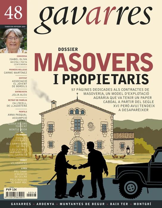 El dossier dedica les seves 57 pàgines a parlar dels contractes de masoveria, un model dexplotació agrària que va tenir un paper cabdal a partir del segle XVI, amb laparició duna classe pagesa benestant, però que avui tendeix a desaparèixer. El monogràfic recull lexperiència de propietaris i masovers i dona veu a persones que encara ho són o que ho van ser fins als anys 60 i 70 del segle passat, quan van començar a canviar les seves condicions de vida i les circumstàncies econòmiques en què es desenvolupava lactivitat agrària i forestal. És, doncs, i una vegada més, la crònica dun món que sen va.