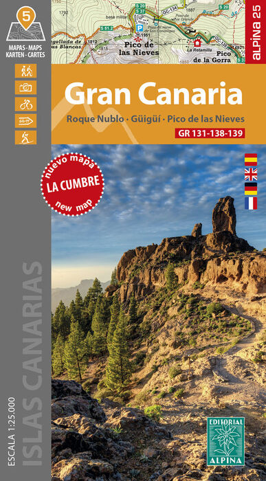 Los mapas de Gran Canaria cubren la zona de mayor interés excursionista y montañero de la isla. Por este motivo, se ha dividido el área en 5 sectores: NE, NW, SE, SW y la zona central La Cumbre.