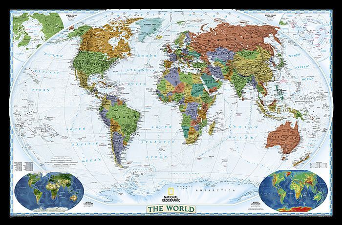 National Geographic's World map is the standard by which all other reference maps are measured. The World map is meticulously researched and adheres to National Geographic's convention of making independent, apolitical decisions based on extensive research using multiple authoritative source.